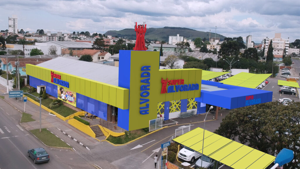 Projeto de revitalização visual desenvolvido para supermercado, com foco em aumentar a visibilidade da fachada, organizar a comunicação visual e fortalecer o apelo comercial do ponto.